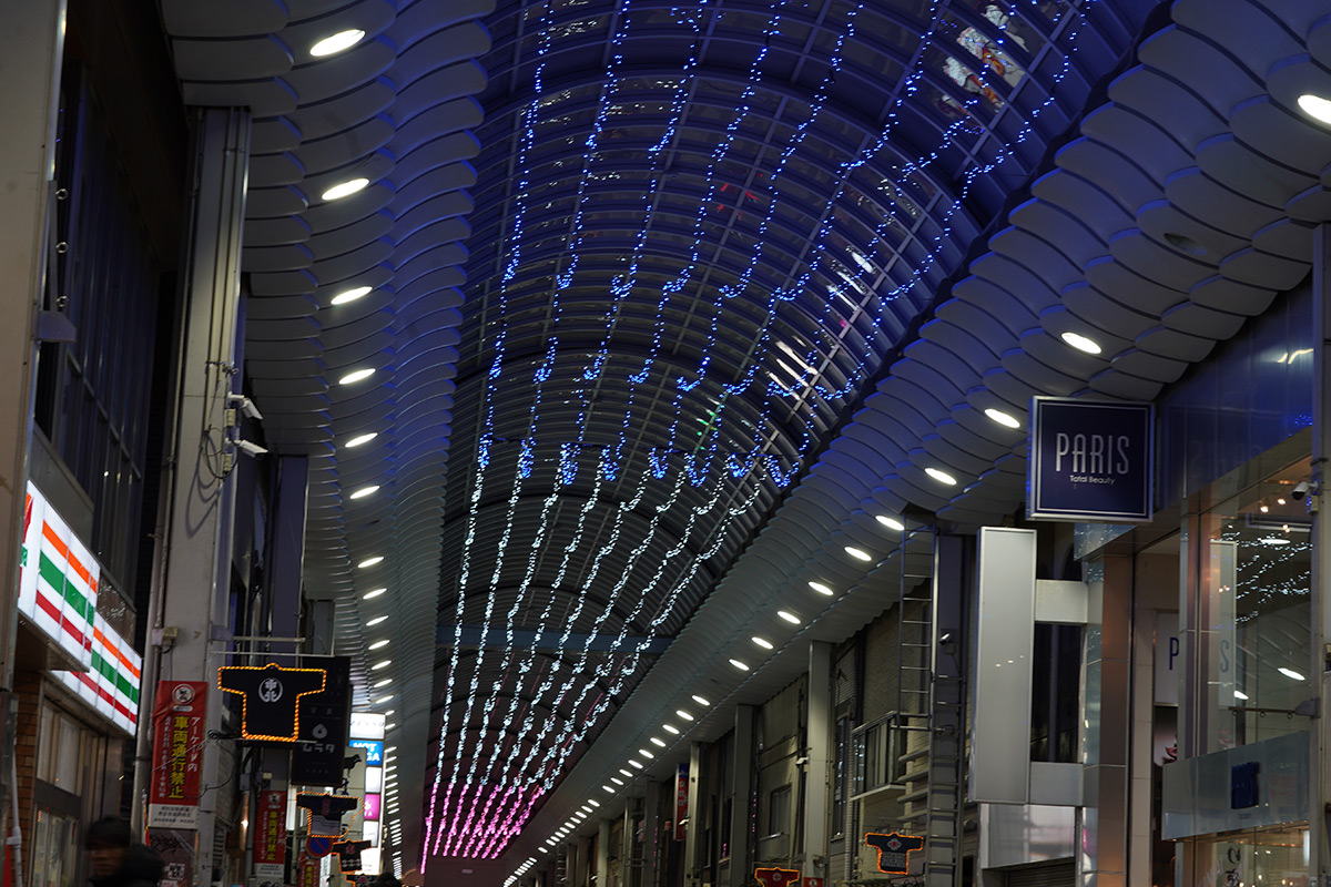 この季節にしか見る事のできない幻想的な光で、商店街を彩っております。
